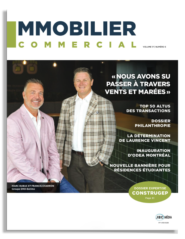 Un duo inébranlable, un parcours d’exception, 30 ans de grandes réalisations. Pour souligner cet anniversaire, Francis Charron et Marc Dubuc prennent la pose à la une du plus récent numéro du magazine Immobilier Commercial.