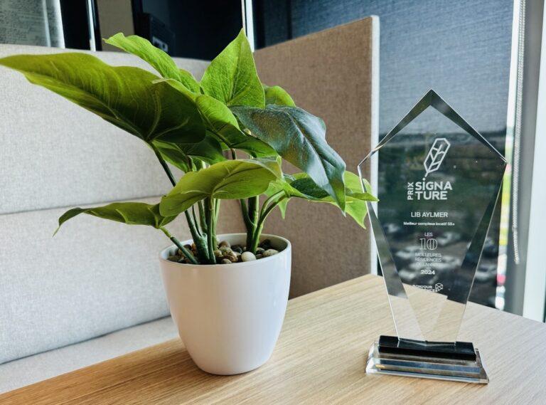We are proud to announce that the Lib Aylmer 55+ rental complex in Gatineau won the 2024 Prix Signature award. This prestigious award recognizes excellence in the senior living sector of Quebec. With its contemporary design, welcoming atmosphere, and thriving community, Lib Aylmer distinguished itself in the 55+ rental complex category, setting a standard for the entire industry.